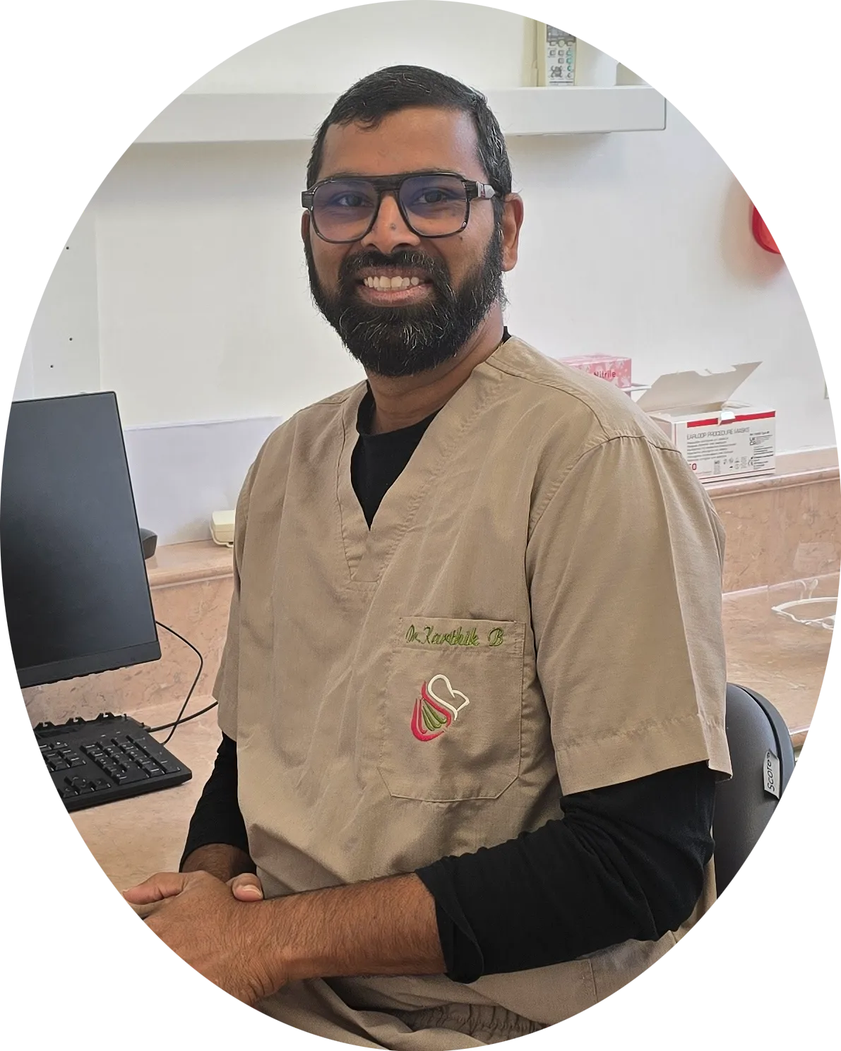 Karthik qualified from Maharashtra University in 2008 with a special interest in Periodontics and Implantology. He hopes to be able to sit the ORE as soon as possible and in the meantime he works at the practice as a Therapist & Hygienist. He aims to deliver non-surgical periodontal therapy alongside routine treatments.